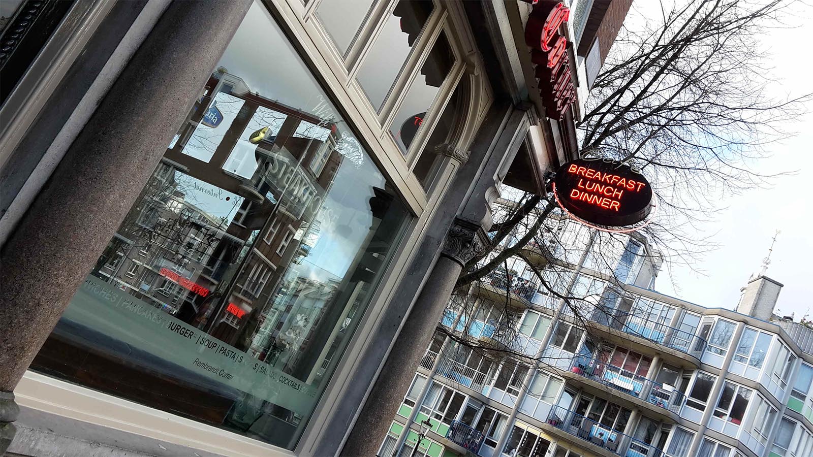 Voor de sfeervolle horecagelegenheid Rembrandt Corner in het centrum van Amsterdam heeft UniekeStickers fraaie raamfolie geproduceerd en gemonteerd. Door de teksten uit de raamfolie te snijden krijgen de ramen een fraai aanzicht, een stukje privacy en een duidelijk boodschap. Dat zijn drie vliegen in één klap!