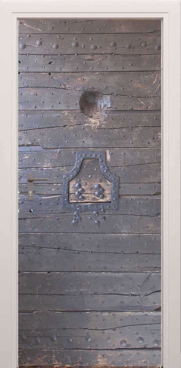 Deursticker van een echte middeleeuwse gevangenisdeur op maat gemaakt