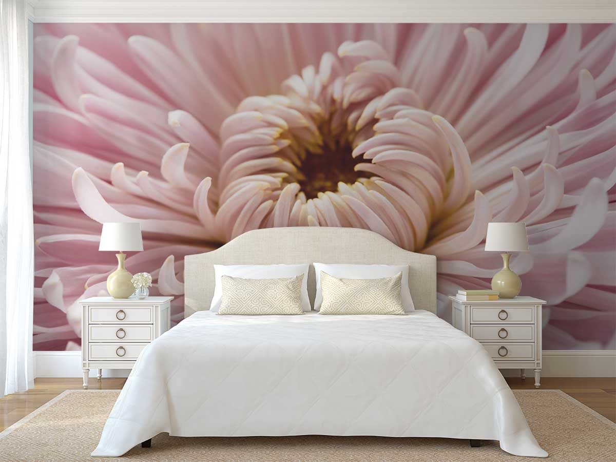 Met Fotobehang Close-up roze chrysant haal je bloemen, roze tinten in huis. Het ontwerp voelt warm en uitnodigend en geeft de ruimte direct een ontspannen sfeer.