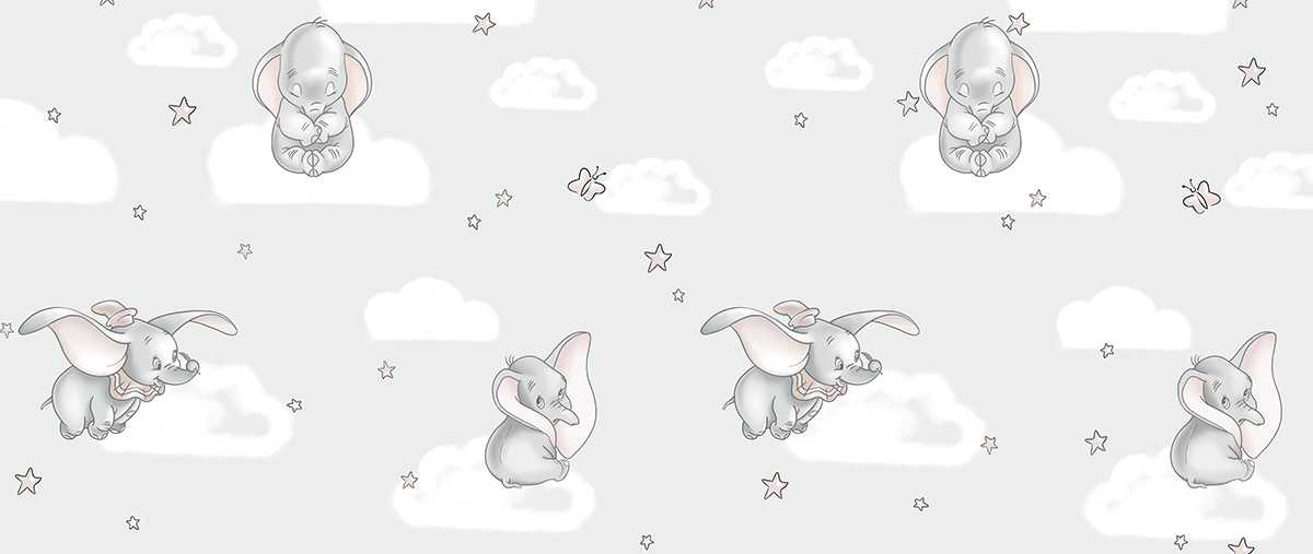 Alsof je een verhaal binnenstapt: Fotobehang schattige dombo olifantjes brengt een vrolijk patroon tot leven. Het resultaat is licht, fantasierijk en helemaal kindvriendelijk.