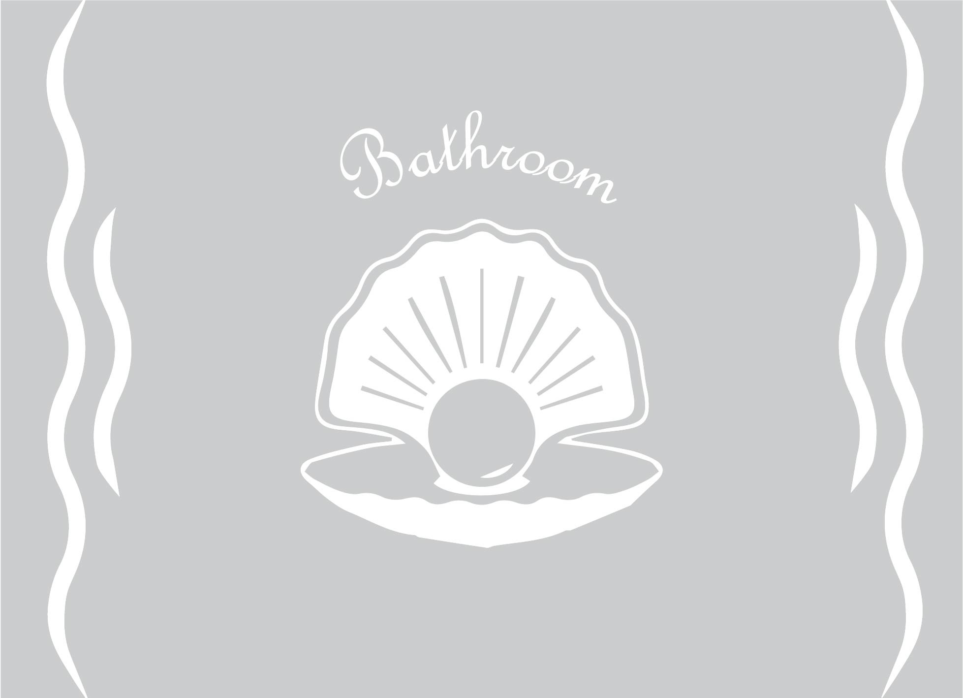 Raamfolie douche met schelp/parel en tekst bathroom op maat gemaakt
