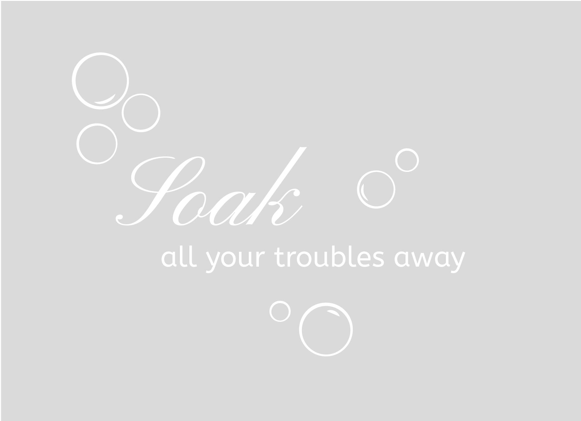 Over het ontwerp – Raamfolie douche met tekst Soak all you troubles away