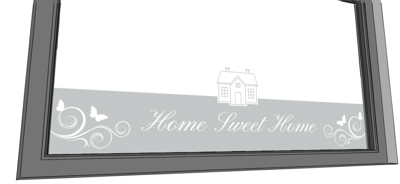 Raamfolie in klassieke stijle met tekst - Home Sweet Home. De witte elementen zullen worden uitgesneden uit melkglasfolie, zodat deze transparant zijn op uw raam. De raamfolie wordt gesneden uit professioneel melkglasfolie wat het licht uitstekend doorlaat en uitstekend blijft kleven. Bovendien verhoogt onze raamfolie de privacy daar het wel licht door laat maar niet transparant is. Je kunt er dus niet doorheen kijken.