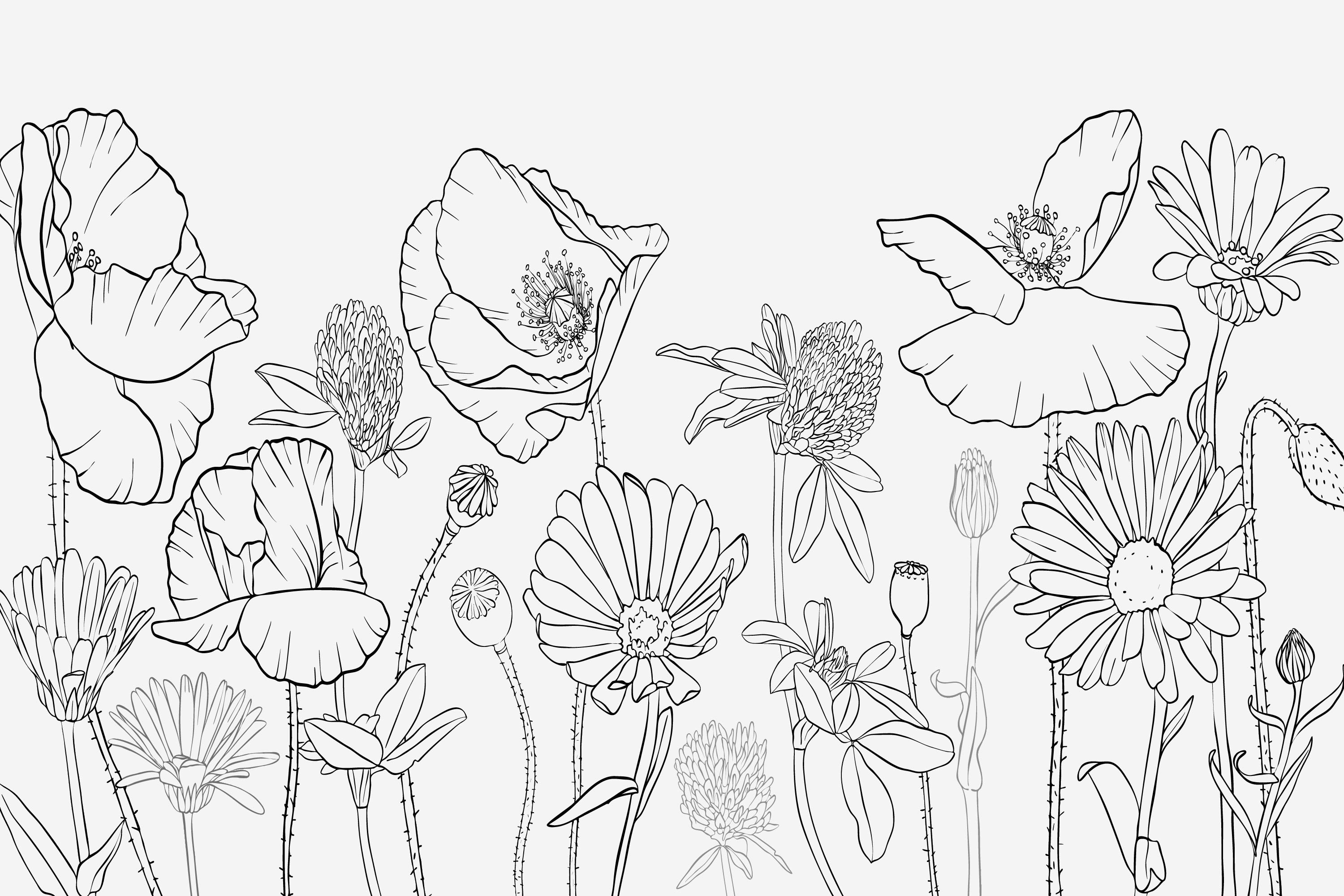 Meer privacy zonder lichtverlies kan ook kleurrijk zijn. Horizontaal bedrukte raamfolie met gedetailleerde bloemen is een horizontale raamfolie met een duidelijke zwarte of grijze print op matglasfolie. Dit zorgt voor extra contrast op het glas en geeft tegelijkertijd optimale anti-inkijk.