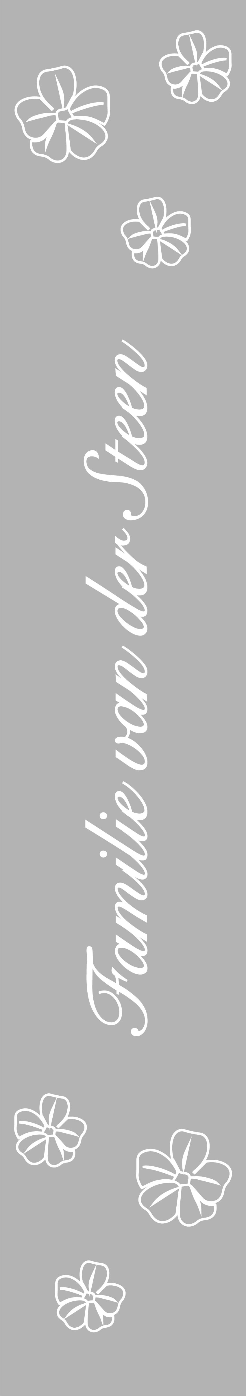 Verticale raamfolie met bloemetjes en naam uitgesneden uit raamfolie.