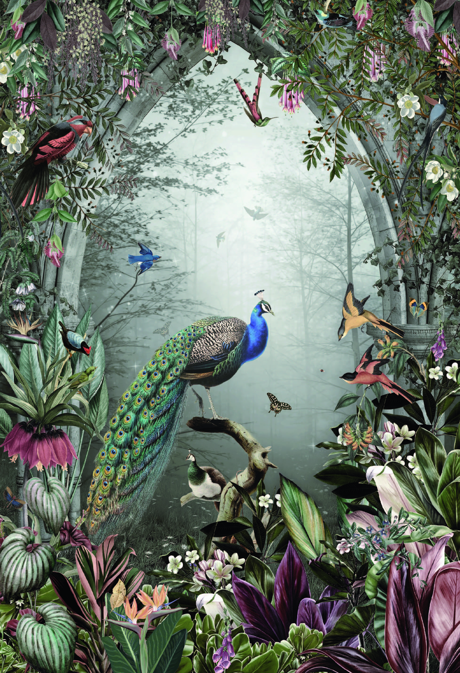 Een bosrijk tafereel met vogels geeft je voordeur een rustieke, natuurlijke sfeer. Bomen, groen en vrij vliegende vogels – dit ontwerp neemt je even mee de natuur in en geeft je woning een warme, organische uitstraling.