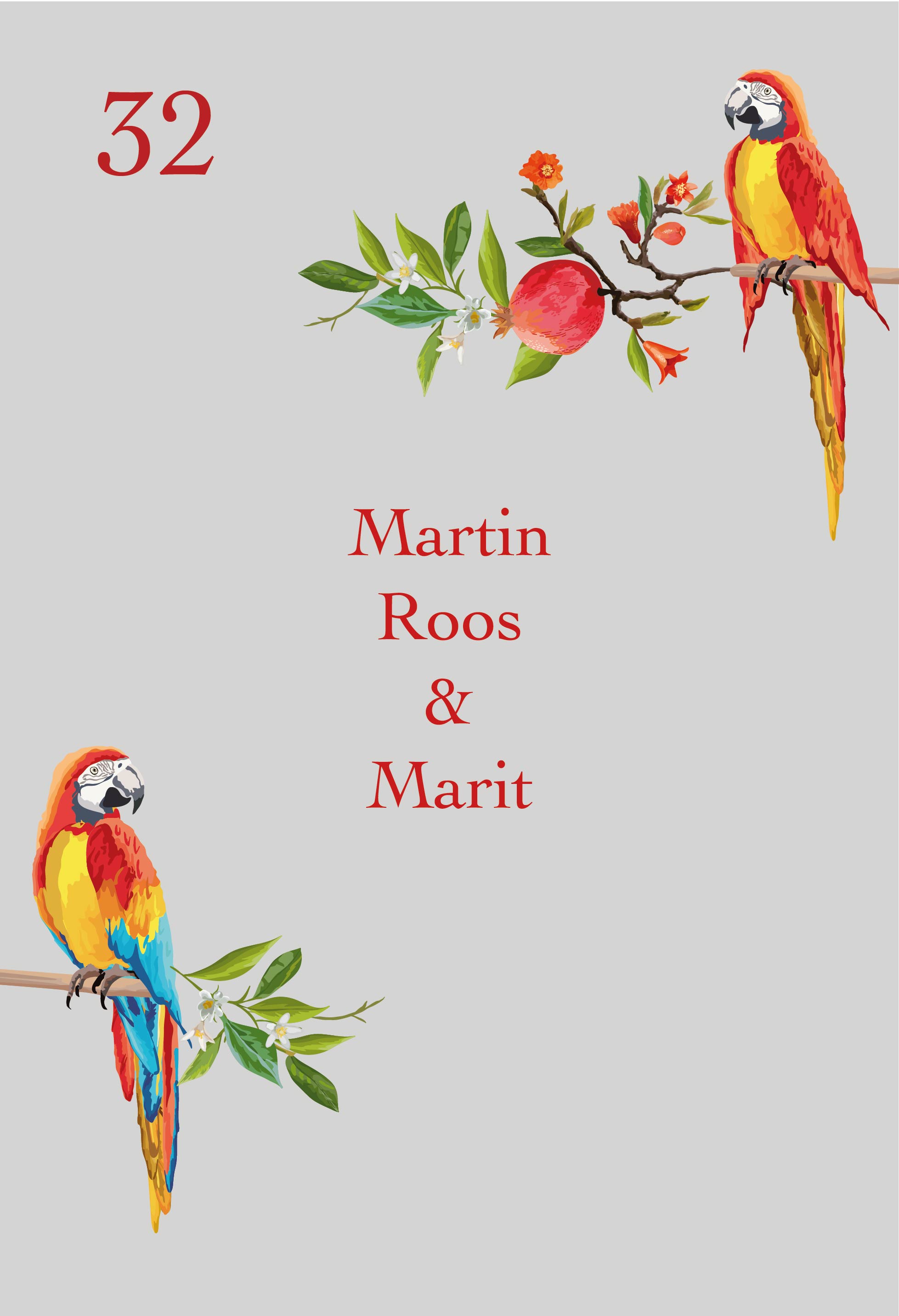 Over het ontwerp – Bedrukte raamfolie voordeur kleurrijke papegaaien, huisnummer en naam