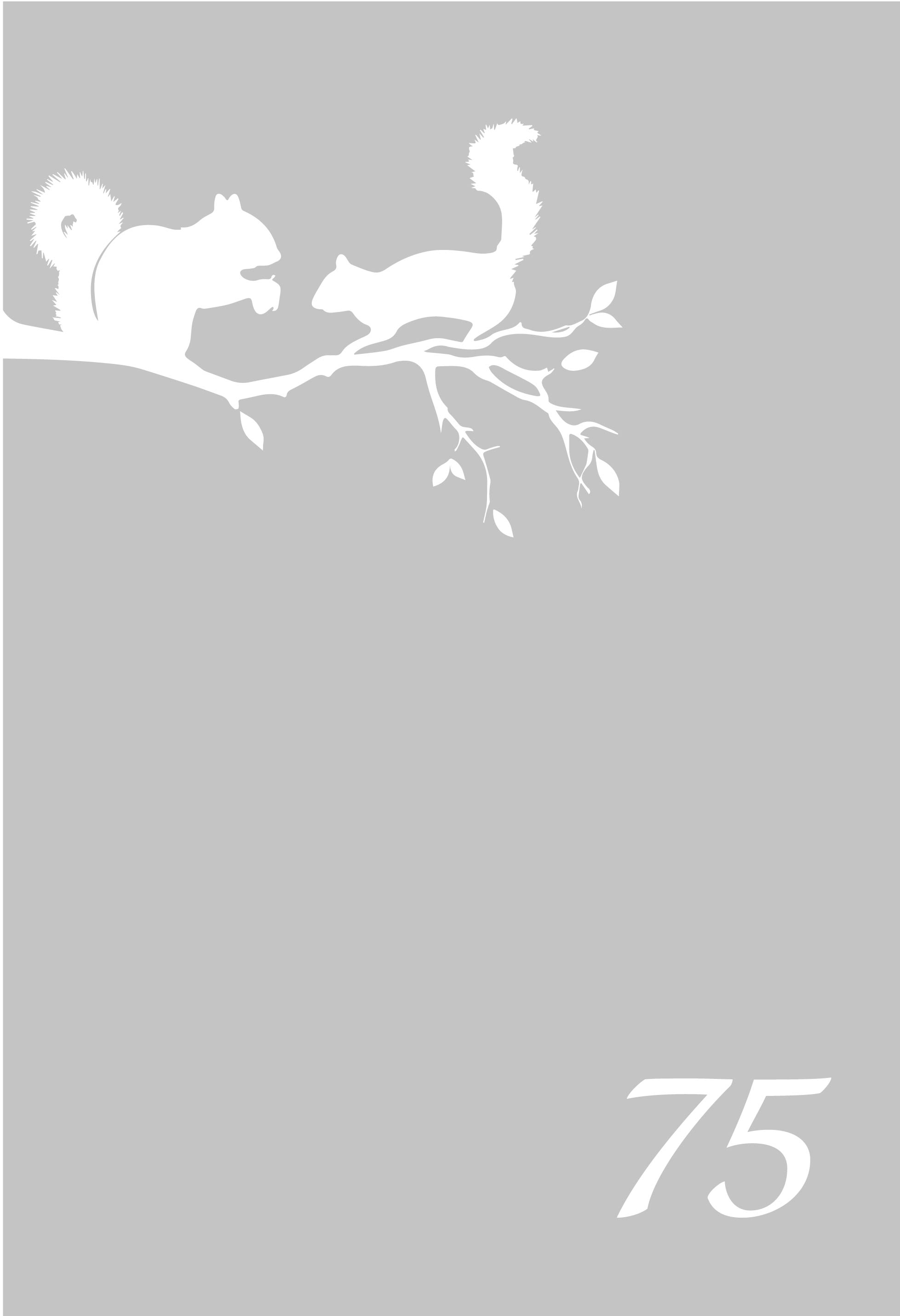 Sierlijke raamfolie met eekhoorns op tak en uw eigen huisnummer (eigen tekst is evt ook mogelijk). Wij zullen alle witte delen uit de raamfolie snijden.