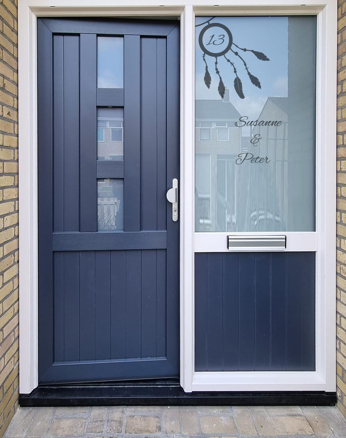 Raamfolie voordeur mandala met huisnr en namen op maat gemaakt
