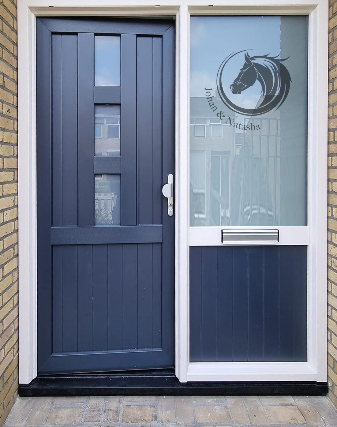 Raamfolie voordeur paard op maat gemaakt