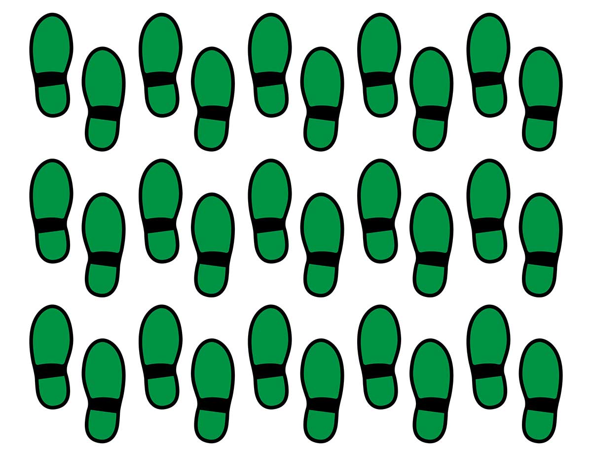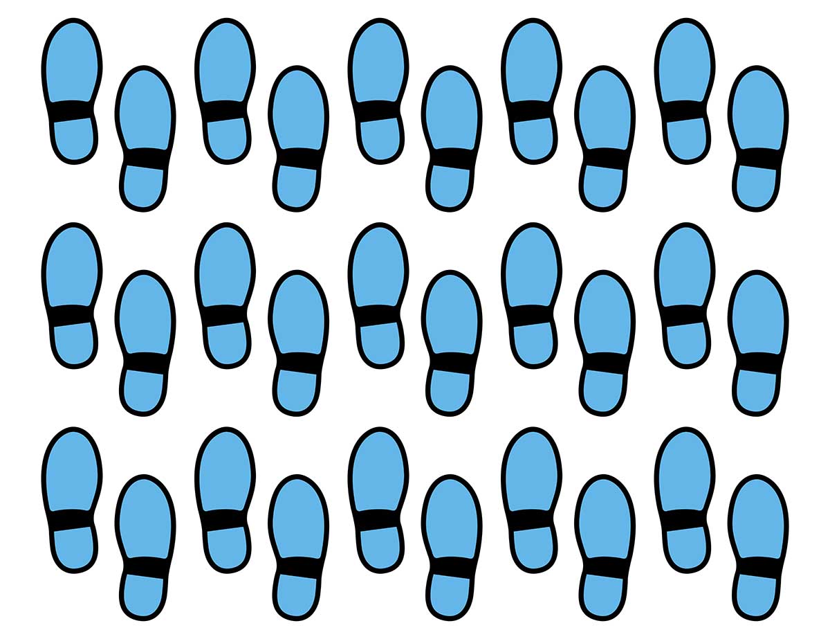 Vloersticker set voetstappen om op een snelle en eenvoudige manier de route kenbaar te maken aan uw klanten of bezoekers. De voetstappen worden gedrukt op een hoge kwaliteit sterk klevend vinyl en zijn daardoor zowel binnen als buiten toepasbaar. De vloersticker voetstap is zowel met een permanente kleeflaag als een unieke removable kleeflaag verkrijgbaar. De removable voetstappen zijn binnen 6 maanden zonder plakresten of gedoe eenvoudig te verwijderen. De voetstapstickers worden voorzien van een slijtvlaste anti-sliplaag voor een extra lange levensduur. Met de extra sterke kleeflaag zijn onze voetstap vloerstickers zowel binnen als buiten te gebruiken, in zowel doge als natte omgevingen. De voetstappen zijn ieder 23x10cm groot en vergelijkbaar met schoenmaat 40.